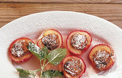 Gefüllte Pfirsiche Zutaten 4 reife, feste weiße Pfirsiche (am besten Weinbergpfirsiche) Butter für die Form 80 g Amaretti (italienische Mandelmakronen) 2-3 EL Zucker 1 EL Kakaopulver 1 Eigelb 50 ml Rum Butterflöckchen Puderzucker zum Bestreuen guk:similarity-keywords=""> [...]