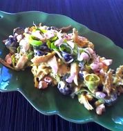 Puten-Lauch-Curry Zutaten 500 g Lauch 1 Petersilienwurzel (100 g) 300 g Putenbrustfilet 1 EL Zitronensaft 1 EL Tomatenmark 2 EL Sojasauce 1 Knoblauchzehe 2 EL Olivenöl Jodsalz Pfeffer 2 EL Walnusskerne (20 g) Alufolie guk:similarity-keywords=""> 500 g Lauch , 1 [...]