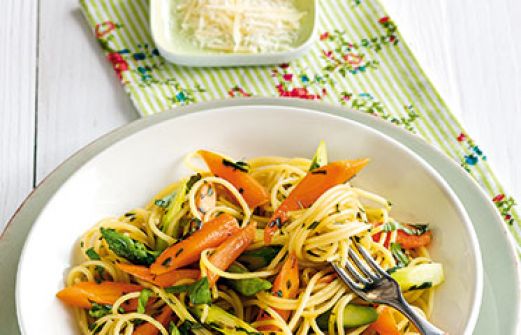Spaghetti mit grünem Spargel Zutaten 500 g grüner Spargel 1 Bund zarte Frühlingsmöhren 2 EL Olivenöl Salz 250 g Spaghetti schwarzer Pfeffer aus der Mühle 1 Päckchen TK-Kräuter (z.B. Italienische Kräutermischung) 30 g Parmesan, frisch gerieben guk:similarity-keywords=""> [...]