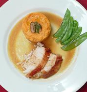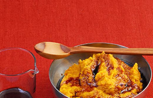 Kürbis-Maronen-Püree Zutaten 400 g Maronen (Esskastanien, ersatzweise 250 g vakuumverpackte, gegarte Maronen) 1,2 kg Hokkaido-Kürbis 1 Zwiebel 2 EL Butter 1 TL Puderzucker 350 ml Gemüsebrühe (Instant) 2 EL heller Fruchtessig (z. B. Quitten- oder Apfelessig) Salz Pfeffer Kü [...]