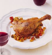 Gefüllte Ente aus dem Bratschlauch Zutaten 1 küchenfertige Flugente (ca. 2,8 kg) 50 ml Apfelsaft Salz Pfeffer gemahlener Piment 250 g Zwiebeln 4 kleine Äpfel 250 g vorgekochte Maroni (vakuumverpackt) 100 g getrocknete Cranberrys 2 TL getrockneter Rosmarin 2-3 EL Schmand (24 [...]