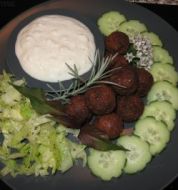 Falafel mit Sesamsauce und Salat Zutaten 200 g getrocknete Kichererbsen 1-2 Knoblauchzehen je 3-4 Zweige Minze, glatte Petersilie und Koriandergrün 2 Frühlingszwiebeln 1 TL Backpulver je 1 TL gem. Kreuzkümmel und Koriander 1 TL Harissa (scharfe Chilipaste, ersatzweise Cayennepfe [...]