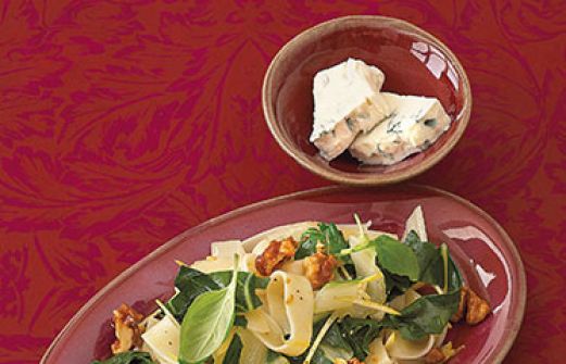 Bandnudeln mit Mangold Zutaten 750 g Mangold 1 Bio-Zitrone 3-4 Knoblauchzehen 75 g Walnusskerne ½ Bund Basilikum 1 EL Butter 1 EL Zucker 400 g Bandnudeln Salz 4 EL Olivenöl Pfeffer frisch geriebene Muskatnuss 100 g Blauschimmelkäse (z. B. Gorgonzola) guk:similarity- [...]