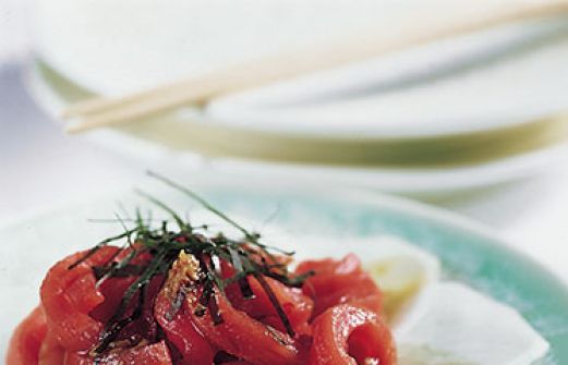 Tunfisch mit Wasabi-Sauce Zutaten 1 Stück Rettich (etwa 6 cm lang) 1 EL Sesamsamen 4 EL Sojasauce 1/2-1 TL Wasabi (aus der Tube) 1 geröstetes Nori-Blatt 250 g ganz frischer roter Tunfisch guk:similarity-keywords=""> 1 Stück Rettich (etwa 6 cm lang) , 1 EL Sesamsamen [...]