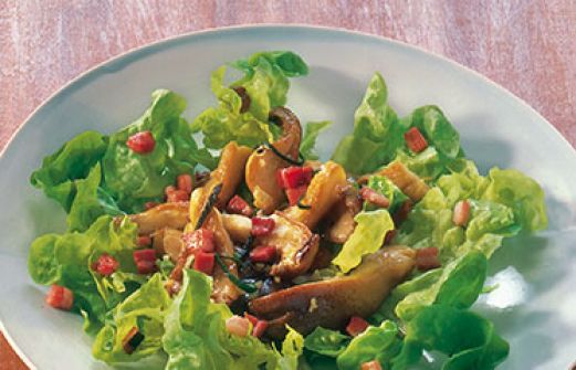 Eichblattsalat mit Austernpilzen Zutaten 1 großer Kopf Eichblattsalat 250 g Austernpilze 3 frische Salbeiblätter (ersatzweise 1/2 TL getrockneter Salbei) 1 Knoblauchzehe 150 g durchwachsener Räucherspeck 3 EL Olivenöl 1 EL Rotweinessig Salz Pfeffer guk:similarity-keywor [...]
