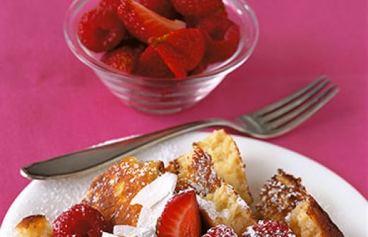 Kokosschmarrn mit Beeren Zutaten 500 g gemischte Beeren (z. B. Erdbeeren, Heidelbeeren, Himbeeren, Brombeeren) 1 Päckchen Vanillezucker 4 EL Kokosflocken 4 Eier (Größe M) 2 EL Zucker 1/4 l Milch 150 g Mehl Salz Öl zum Braten Puderzucker und Kokos-Chips zum Garnieren guk:sim [...]