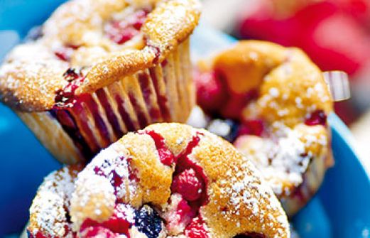 Bunte Beeren-Muffins Zutaten 150 g gemischte Beeren (frisch oder TK) 200 g Mehl 2 EL gemahlene Mandeln 2 TL Backpulver Zimtpulver 150 g weiche Butter 150 Zucker 1 Päckchen Vanillezucker 1 Ei 250 g Joghurt Bittermandelaroma Butter für das Blech Puderzucker zum Bestreuen [...]