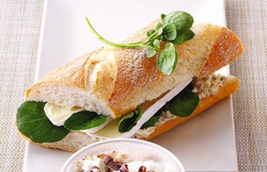 Birnen-Brie-Baguette Zutaten 2 EL flüssiger Honig 2 EL körniger Senf 1 EL Zitronensaft 3 EL Crème fraîche Salz Pfeffer 1 reife feste Birne 200 g Brunnenkresse (ersatzweise Feldsalat oder 2 Kästchen Gartenkresse) 250 g Brie 1 frisches Baguette guk:similarity-keywords=""> [...]