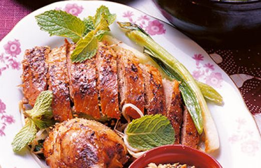 Lackierte Ente Zutaten 1 küchenfertige Ente (ca. 2 kg) 1 EL Fünf-Gewürze-Pulver 3 EL Reiswein (ersatzweise trockener Sherry) 100 ml Sojasauce 2 EL asiatische Fischsauce (Fertigprodukt) 1 EL Palm- oder brauner Zucker 1 kleine getrocknete Chilischote 2 Knoblauchzehen 1 Bund Asia-M [...]