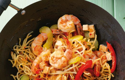 Knuspernudeln mit Tofu Zutaten 300 g Tofu 1 EL Teriyaki-Marinade 1 EL süße Chilisauce 250 g chinesische Eiernudeln Salz 1 Mini-Salatgurke 1 rote Paprikaschote 1 Stück frischer Ingwer (etwa 2 cm) 250 g geschälte Garnelen (roh oder gekocht) 6 EL Öl 2 EL helle Sojasauce guk: [...]
