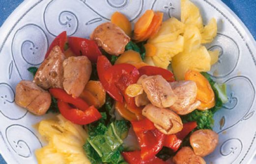 Hähnchenbrust mit Ananas Zutaten 250 g Hähnchenbrustfilet 4 EL Teriyakisauce für Fleisch (japanische Würzsauce, ersatzweise helle Sojasauce) 120 g Langkorn-Naturreis (parboiled) 1 rote Paprikaschote 1 Möhre 1 kleiner Chinakohl (ca. 400 g) 1 EL Rapsöl 100 g frisches Ananasfruc [...]