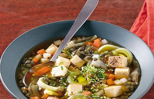 Linseneintopf mit Tofu Zutaten 2 Zwiebeln 1 EL Butter 300 g Tellerlinsen 1,2 l Gemüsebrühe 250 g Möhren 150 g Knollensellerie 1 Lauchstange 200 g Räuchertofu (Reformhaus) Salz Pfeffer 3 EL Weißweinessig 1 Bund Schnittlauch guk:similarity-keywords=""> 2 Zwiebel [...]