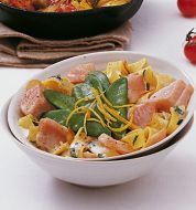 Zitronennudeln mit Makrele Zutaten 200 g geräucherte Makrele 1 Bio-Zitrone 2 Frühlingszwiebeln 4 Stängel Basilikum oder Petersilie 500 g lange dünne Nudeln (z. B. Spaghetti oder Linguine) Salz 1 EL Butter 250 g sehr frische Sahne Pfeffer guk:similarity-keywords=""> 2 [...]