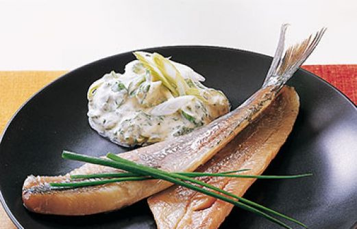 Matjes mit Kräutercreme Zutaten 1/2 Bund gemischte Kräuter 150 g saure Sahne 1 TL scharfer Senf Salz 2 Frühlingszwiebeln 4 Matjes-Doppelfilets (etwa 300 g) guk:similarity-keywords=""> 1/2 Bund gemischte Kräuter , 150 g saure Sahne , 1 TL scharfer Senf , S [...]