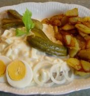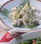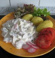 Matjes mit Rote-Bete-Rahm Zutaten 200 g Sahne 200 g Naturjoghurt 2-3 TL Weißweinessig Salz Pfeffer 2 Rote Beten (ca. 200 g; vakuumverpackt aus dem Kühlregal) 1 säuerlicher Apfel 3 Schalotten 2 Gewürzgurken (ca. 100 g) ½ Bund Dill 8 Matjesfilets (à ca. 50 g) guk:similar [...]