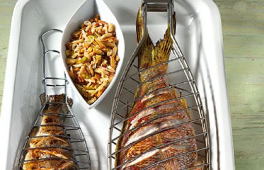 Red Snapper vom Grill Zutaten 2 küchenfertige Red Snapper (à 500 g, ersatzweise Doraden) 1 Bund Koriandergrün 1 große Bio-Orange 4 EL Hot Chili Sauce 4 EL Erdnussöl 3 EL Limettensaft 2 TL Worcestersauce 2 Knoblauchzehen Salz Pfeffer 1/2 TL gemahlener Kreuzkümmel 1 Prise [...]