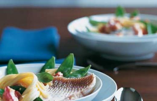 Red Snapper in Kokossoße mit Zuckerschoten Zutaten 4 Red-Snapper-Fischfilets (evtl. beim Fischhändler vorbestellen oder Rotbarschfilets verwenden, ca. 600 g) 1 TL Limettensaft 1 Zwiebel (150 g) 2 Knoblauchzehen 1 Stück frischer Ingwer (30 g) 1 kleine Chilischote 500 g Tomaten [...]