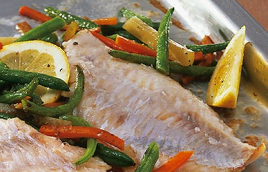 Rotbarsch mit blanchiertem Gemüse vom Blech Zutaten 250 g grüne Bohnen 200 g Möhren 200 g Kohlrabi Salz 2 Rotbarschfilets (à 200 g) 2 EL Zitronensaft Pfeffer frisch gemahlen 15 g frischer Ingwer 2 EL Olivenöl grobes Meersalz guk:similarity-keywords=""> 250 g grüne [...]