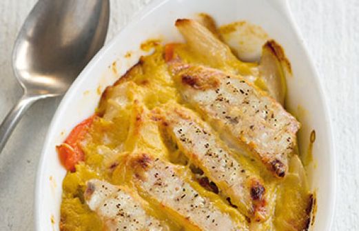 Rotbarsch-Schwarzwurzel-Gratin Zutaten 750 g Schwarzwurzeln 3 EL Essig Salz 400 g kleine Möhren Pfeffer 4 Rotbarschfilets (à ca. 175 g) 2 EL Zitronensaft 2 Eigelb 1 EL scharfer Senf 100 g Sahne 100 ml Apfelsaft 100 g geriebener Emmentaler Fett für die Form guk:simil [...]
