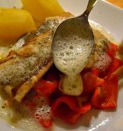 Steinbeißer auf Paprika-Kartoffel-Gemüse Zutaten 200 g festkochende Kartoffeln 2 rote Paprikaschoten (400 g) 2 Zweige Estragon 20 g Butter Salz Pfeffer 100 ml Gemüsebrühe 400 g Steinbeißerfilet 1 Esslöffel Dijon-Senf 1 Esslöffel Crème fraîche guk:similarity-keywords=""> [...]