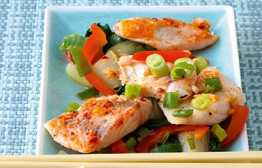 Asiatische Fischpfanne mit Viktoriabarsch und Pak Soi Zutaten 2 rote Paprikaschoten 300 g Pak Soi (ersatzweise Chinakohl) 3 Frühlingszwiebeln 1 Knoblauchzehe 3 cm frische Ingwerwurzel 400 g Viktoriabarschfilet Saft von 1 Limette 1 EL Sonnenblumenöl 1/2 TL gemahlenes Zitrone [...]