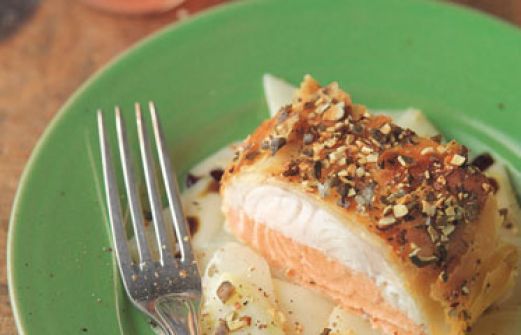 Lachsforelle und Waller im knusprigen Teigmantel auf Kohlrabigemüse Zutaten 500 g Kohlrabi Salz 2 Schalotten 100 g Butter 2 TL Mehl 50 g Weißwein 200 ml Fischfond 150 g Sahne Pfeffer 1 Lachsforellenfilet, ohne Haut (ca. 400 g) 1 Wallerfilet, ohne Haut (ca. 400 g) Saft [...]