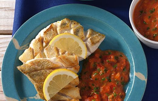 Zander mit Tomaten-Kresse-Sauce Zutaten 2 Tomaten 1 kleine Zwiebel 1 TL Öl 2 EL Wermut nach Belieben (z.B. Noilly Prat oder Martini) 400 ml Fischfond (Glas) 100 g Sahne 1 EL Speisestärke ca. 1 EL Zitronensaft 1 kleines Beet Kresse 600 g Zanderfilet mit Haut 1 EL Mehl 3 E [...]