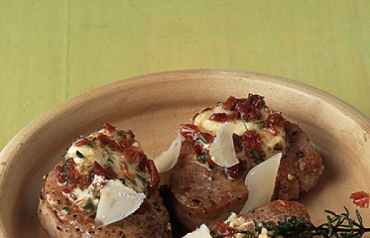 Medaillons in Thymianbutter Zutaten 4 Zweige frischer Thymian 4 getrocknete Tomaten (in Öl) + 2 EL Einlegeöl 1 Knoblauchzehe Salz Pfeffer 60 g weiche Butter 300 g Schweinefilet 20 g Parmesan am Stück guk:similarity-keywords=""> 4 Zweige frischer Thymian , 4 ge [...]