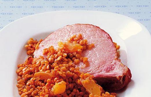 Kasseler auf Linsengemüse Zutaten 1 Zwiebel 1 EL Öl 125 g rote Linsen 1 TL gekörnte Gemüsebrühe 1 getrocknete Chilischote 4 Aprikosenhälften (frisch oder aus der Dose) 2 EL Aceto balsamico 1 TL Honig Salz 2 gegarte Kasselerkoteletts guk:similarity-keywords=""> 1 Zwieb [...]