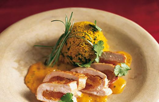Aprikosenhähnchen mit Pistazien-Couscous Zutaten 400 ml Orangensaft 1/2 TL Zimtpulver 1 Msp. Cayennepfeffer 1-2 Msp. edelsüßes Paprikapulver 100 g getrocknete Aprikosen 1 großes Hähnchenbrustfilet (250-300 g) Salz 3 1/2 EL Olivenöl 4 Stängel Koriandergrün 1 kleiner Zweig Rosmar [...]
