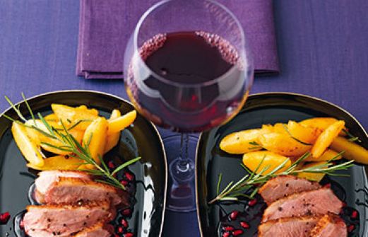 Entenbrust 80° mit Granatapfel-Rotwein-Sauce Zutaten 2 kleine Barbarie-Entenbrustfilets (à ca. 200 g) Salz Pfeffer 1 EL Öl 1 Granatapfel 1 Schalotte 100 ml trockener Rotwein 50 ml Geflügelfond frisch geriebene Muskatnuss 1 TL flüssiger Honig 1 TL Speisestärke (nach Belieben [...]
