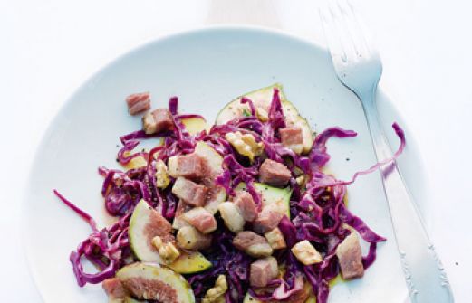 Rotkrautsalat mit Feigen und Entenbrust Zutaten 6 Feigen 250 ml frisch gepresster Orangensaft (aus 3-4 Orangen) 1 EL Honig 1/2 Rotkohl 1 EL Rotweinessig 2 EL Walnussöl 2 EL Rapsöl Salz Pfeffer 250 g geräucherte Entenbrust 50 g Walnusskerne 20 g Butter guk:similarity-key [...]