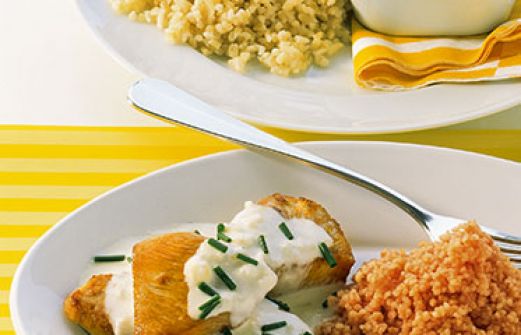 Rahmschnitzel mit Couscous Zutaten 4 Putenschnitzel (je etwa 150 g) Salz Pfeffer, frisch gemahlen 2 EL Öl 1 kleine Zwiebel 80 g Weißbrot vom Vortag 1 TL Butter 400 ml Hühnerbrühe 150 g Sahne 1 EL Schnittlauchröllchen 500 ml Tomatensaft 250 g Couscous guk:similarity-k [...]