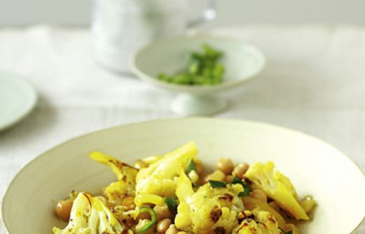Blumenkohl mit Kichererbsen Zutaten ½ TL Safranfäden 100 g Zwiebeln ½ Blumenkohl (ca. 250 g) 1 grüne Chilischote 1 Bund glatte Petersilie 1 EL Distelöl 400 ml Gemüsefond (aus dem Glas) 100 ml Kokosmilch Salz schwarzer Pfeffer aus der Mühle Cayennepfeffer 1 Dose Kichererb [...]