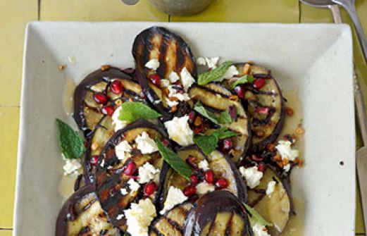Gegrillte Auberginen mit Schafskäse und Granatapfel Zutaten 1 kg Auberginen Salz 3 EL Pinienkerne 1 TL Koriandersamen 1/2 TL Cayennepfeffer 1 EL getrocknete Hibiskusblüten 1 Zitrone 1 EL Sesampaste (Tahin) 1 TL Aprikosenkonfitüre 100 ml Rapsöl Pfeffer 1/2 Granatapfel 200 [...]