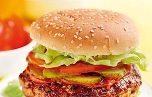 Hamburger zum selber bauen Zutaten 1 Zwiebel 400 g Rinderhackfleisch 1 Ei 1 TL Senf 1 EL Semmelbrösel Salz Pfeffer edelsüßes Paprikapulver 2 Tomaten 2 große Essiggurken (aus dem Glas) 8 Blätter Eisbergsalat 4 Burgerbrötchen Ketchup und Mayonnaise (nach Belieben) Sonnenbl [...]