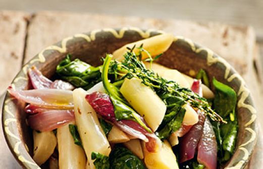 Schwarzwurzelgemüse mit roten Zwiebeln und Thymian Zutaten 1 Zitrone 1 kg Schwarzwurzeln 2 rote Zwiebeln 110 ml Olivenöl 1 EL Zucker Salz, schwarzer Pfeffer aus der Mühle 4 Lorbeerblätter 4 Thymianzweige 200 g Blattspinat (am besten Winterspinat) 1 EL Rotweinessig guk:si [...]