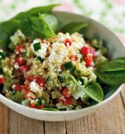 Bulgursalat mit Kräuter-Aprikosen Zutaten 200 g Bulgur Salz 100 g getrocknete Aprikosen 2 rote Chilischoten 1 Bund Frühlingszwiebeln je 3 Stängel Minze, Zitronenmelisse, Petersilie und Basilikum 4 EL Zitronensaft Pfeffer 1/2 TL gemahlener Koriander 1 TL Honig 6 EL Olivenö [...]