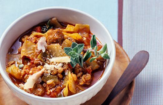 Italienischer Krauteintopf mit Kalb und Gerstengraupen Zutaten 500 g Kalbfleisch (Schulter oder Nacken) 1 Zwiebel (100 g) 400 g Weißkohl 1 kleine Knoblauchzehe Salz schwarzer Pfeffer aus der Mühle 2 EL Olivenöl 1 EL Tomatenmark 1 Dose Pizzatomaten (400 g), in Stücke geschnitt [...]
