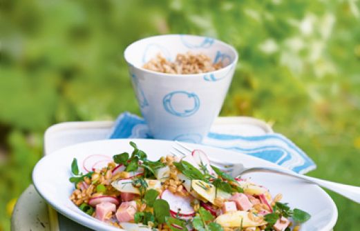 Grünkernsalat mit Spargel Zutaten 200 g Grünkern 800 ml Gemüsebrühe 500 g weißer Spargel 150 g gekochter Schinken (am Stück) 100 g Radieschen 1 Bund Frühlingszwiebeln 1 Bund Brunnenkresse 1 EL Kapern 3 EL Rotweinessig 2 TL Honig 2 TL Dijon-Senf 4 EL Öl (z. B. Raps- oder Di [...]