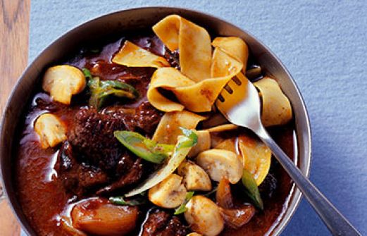 Rotweingulasch mit Schalotten und Anispilzen Zutaten 500 g durchwachsenes Rindfleisch (aus der Wade oder Schulter) 200 g Schalotten Salz schwarzer Pfeffer aus der Mühle etwas Mehl (Type 405) 2 EL Rapsöl 1 gehäufter EL Tomatenmark ¼ l kräftiger Rotwein, z. B. Cabernet Sauvignon [...]