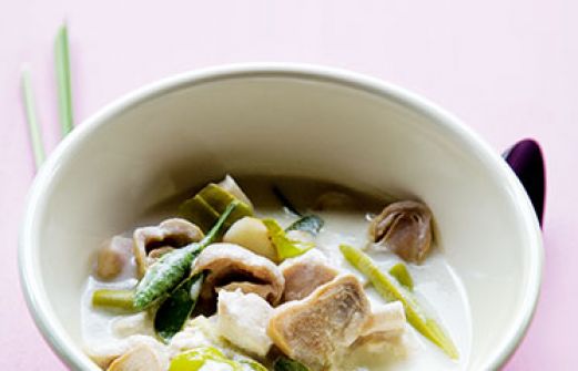 Kokossuppe mit Hähnchenbrustfilet (Thom Kha Gai) Zutaten 60 g frische junge Galgantwurzel 2 Stängel Zitronengras 250 g Hähnchenbrustfilet 4 kleine getrocknete rote Chilischoten 4 getrocknete Shiitakepilze oder 50 g frische Pilze (z. B. Champignons, Austern- oder Strohpilze) 1 l Ko [...]