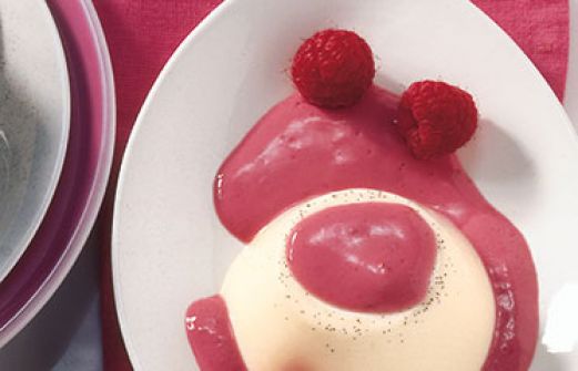 Panna cotta mit Himbeersauce Zutaten 2 Vanilleschoten 400 ml Milch 600 g Sahne 50 g Zucker 7 Blatt weiße Gelatine 500 g frische Himbeeren (ersatzweise aufgetaute TK-Himbeeren) 150 g Puderzucker 200 g Joghurt 6 Portionsförmchen oder kleine Tassen (ca. 180 ml Inhalt) guk:sim [...]