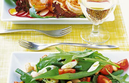 Bohnensalat mit Bärlauch Zutaten 150 g grüne Bohnen Salz 1 Dose weiße Bohnen (250 g Abtropfgewicht) 200 g kleine Tomaten 50 g Bärlauch 30 g Rucola 2 Frühlingszwiebeln 3 EL Rotweinessig Pfeffer 5 EL Olivenöl 1 kleine Knoblauchzehe guk:similarity-keywords=""> 150 g [...]