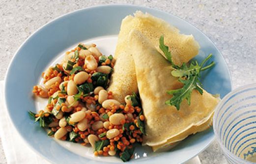 Pfannkuchen mit Bohnen und Linsen Zutaten 375 g Bohnen und Linsen (z. B. weiße dicke Bohnen, Mungobohnen, rote Linsen) 1 Zwiebel 4 EL Olivenöl 200 g Mehl 400 ml Milch 4 Eier (Größe M) Salz 50 g Rucola Pfeffer 5 EL Balsamico bianco guk:similarity-keywords=""> 375 g [...]