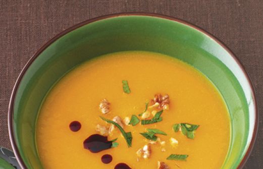 Kürbissuppe mit Bärlauch und Kürbiskernöl Zutaten 1 Zwiebel 500 g Hokkaido-Kürbis 1 Kartoffel 2 TL Rapsöl 600 ml Gemüsebrühe 20 g Walnusskerne 2-3 Bärlauchblätter (ersatzweise Blättchen von 2-3 Stängeln glatter Petersilie) Salz, Pfeffer gemahlener Piment 1 TL Zitronensaft 1 [...]