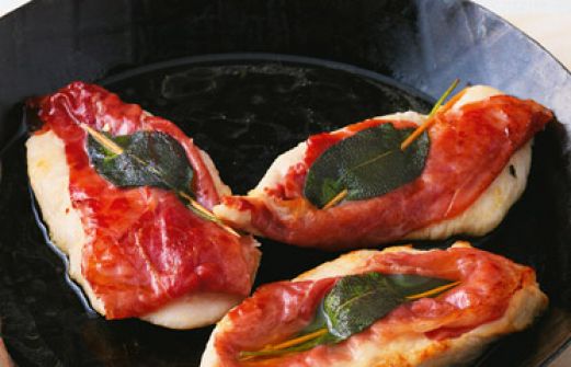 Hähnchen-Saltimbocca Zutaten 3 große Hähnchenbrustfilets (à ca. 200 g) 100 g roher geräucherter Schinken in dünnen Scheiben 9 Salbeiblättchen Salz Pfeffer 1 EL Butter 2 EL Olivenöl ⅛ l trockener Weißwein oder Hühnerbrühe guk:similarity-keywords=""> 3 große Hähnchenbrus [...]