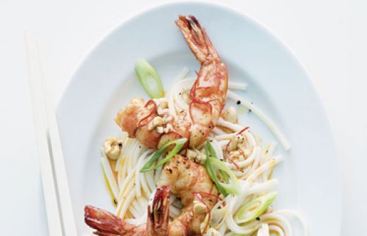 Reisnudeln mit Currygarnelen Zutaten 1 rote Chilischote 2 Frühlingszwiebeln 12 Riesengarnelen Salz 1/2 Limette 2 EL Erdnussöl 30 g gehackte Erdnüsse 1 EL Currypulver 100 g butter 2 EL Honig 250 g breite Reisnudeln guk:similarity-keywords=""> 1 rote Chilischote , [...]