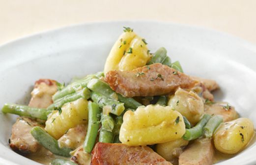 Kasseler mit Sahnebohnen und Gnocchi Zutaten Salz Pfeffer 150 g ausgelöstes Kasselerkotelett 1 EL Öl 1 kleine Zwiebel 150 ml Fleischbrühe 5 EL Sahne ½ TL getrockneter Thymian 100 g TK-Prinzessbohnen 200 g Gnocchi (aus dem Kühlregal) guk:similarity-keywords=""> Salz [...]