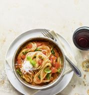 Gnocchi mit Tomatensauce Zutaten 2 Zwiebeln 2 Knoblauchzehen 400 g Kirschtomaten 2 EL Olivenöl 1 Dose geschälte Tomaten (400 g) 2 TL gekörnte Gemüsebrühe 2 EL Pizzagewürz 1 Bund Basilikum 800 g frische Gnocchi (Kühltheke) Salz Pfeffer 2-3 EL frisch geriebener Parmesan [...]